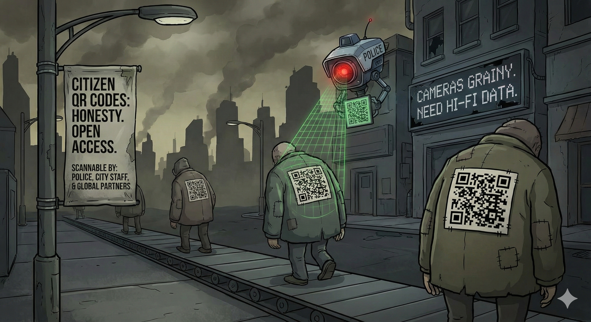 - Visible QR Codes: Every resident must wear a high-contrast QR code on their outermost garment.