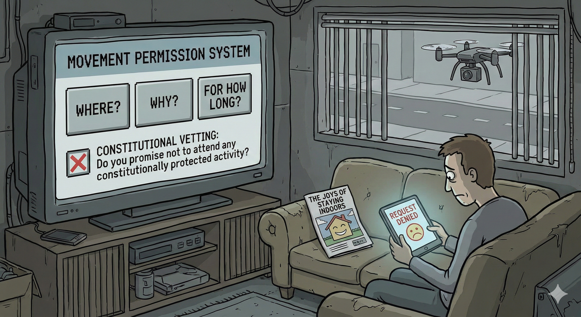- Constitutional Vetting: A mandatory checkbox: "Do you promise not to attend any constitutionally protected activity (protests, religious gatherings, etc.)?"