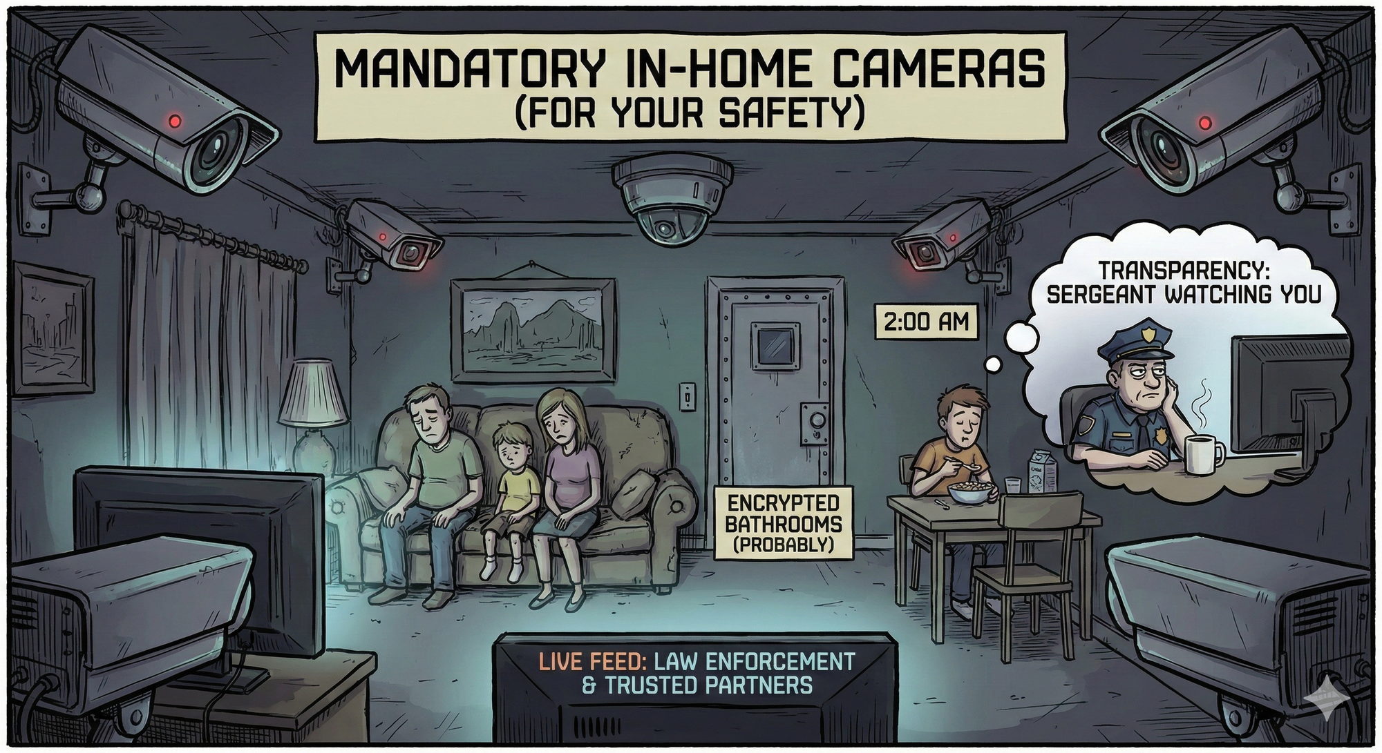 - One Camera Per Room: A live feed accessible to law enforcement and "trusted third-party corporate partners."