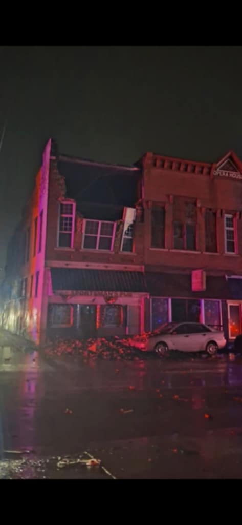 "Due to the severe storm that moved through our area, there are multiple downed power lines across town and a partial building collapse in the downtown area. For everyone’s safety, please avoid traveling into town and stay clear of downtown until further notice. Emergency responders and utility crews need the roads kept clear so they can work safely and restore conditions as quickly as possible."