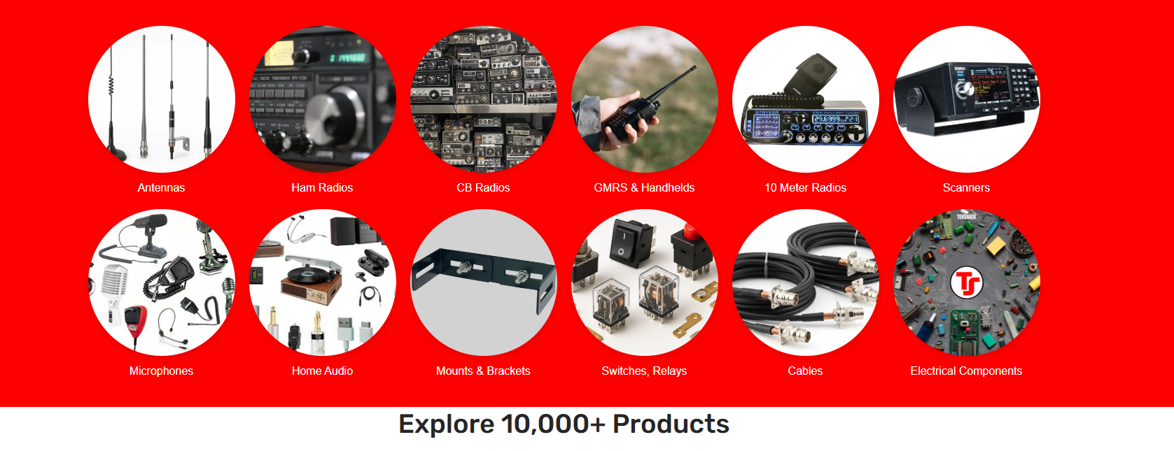 - 📡 CB & Ham Radios from trusted brands like Cobra, Galaxy, Midland, Stryker, and Uniden